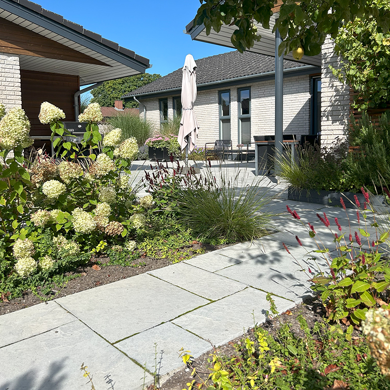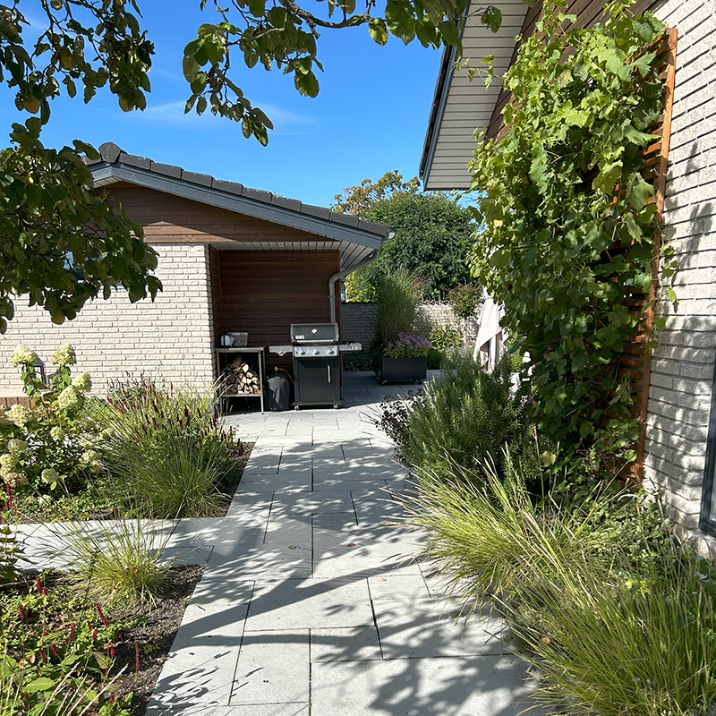Den lækre GRÅ limestone er med dens jævne og bløde overflade særdeles behagelig mod de bare fødder om sommeren. Den er i forskellige nuancer af både lys og mørk grå med en stænk af gråbrunt. Så den matcher de fleste typer huse, lige fra de traditionelle til de ultramoderne.